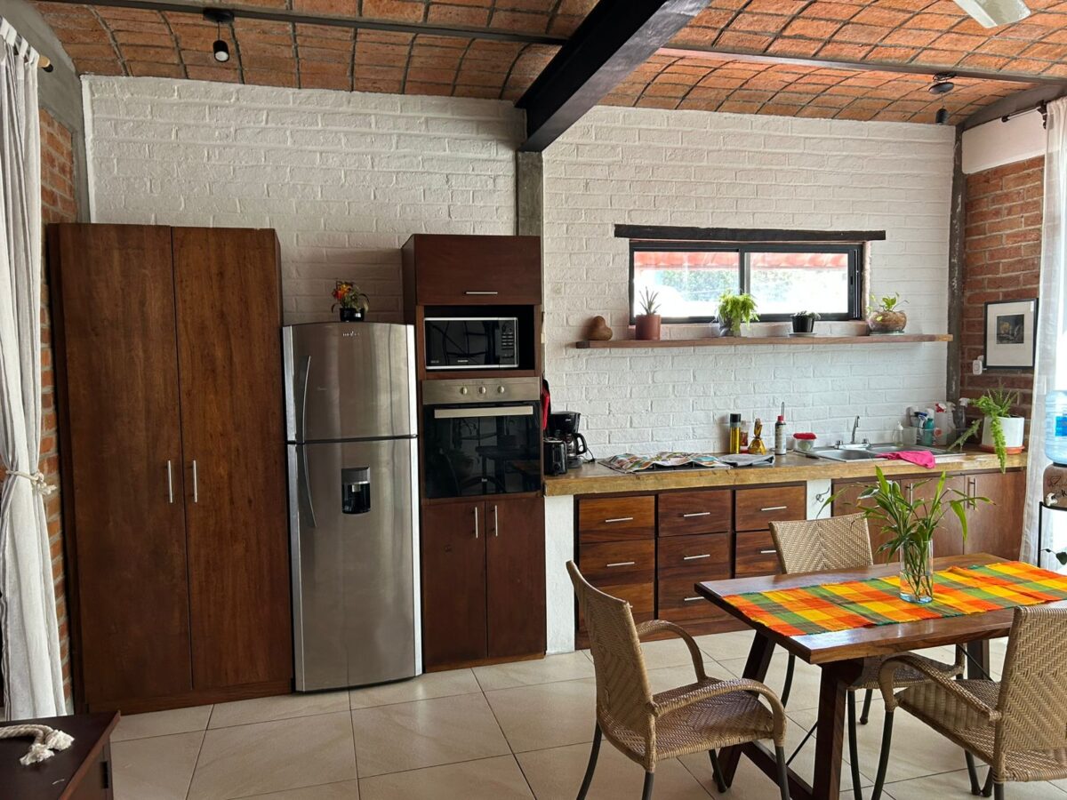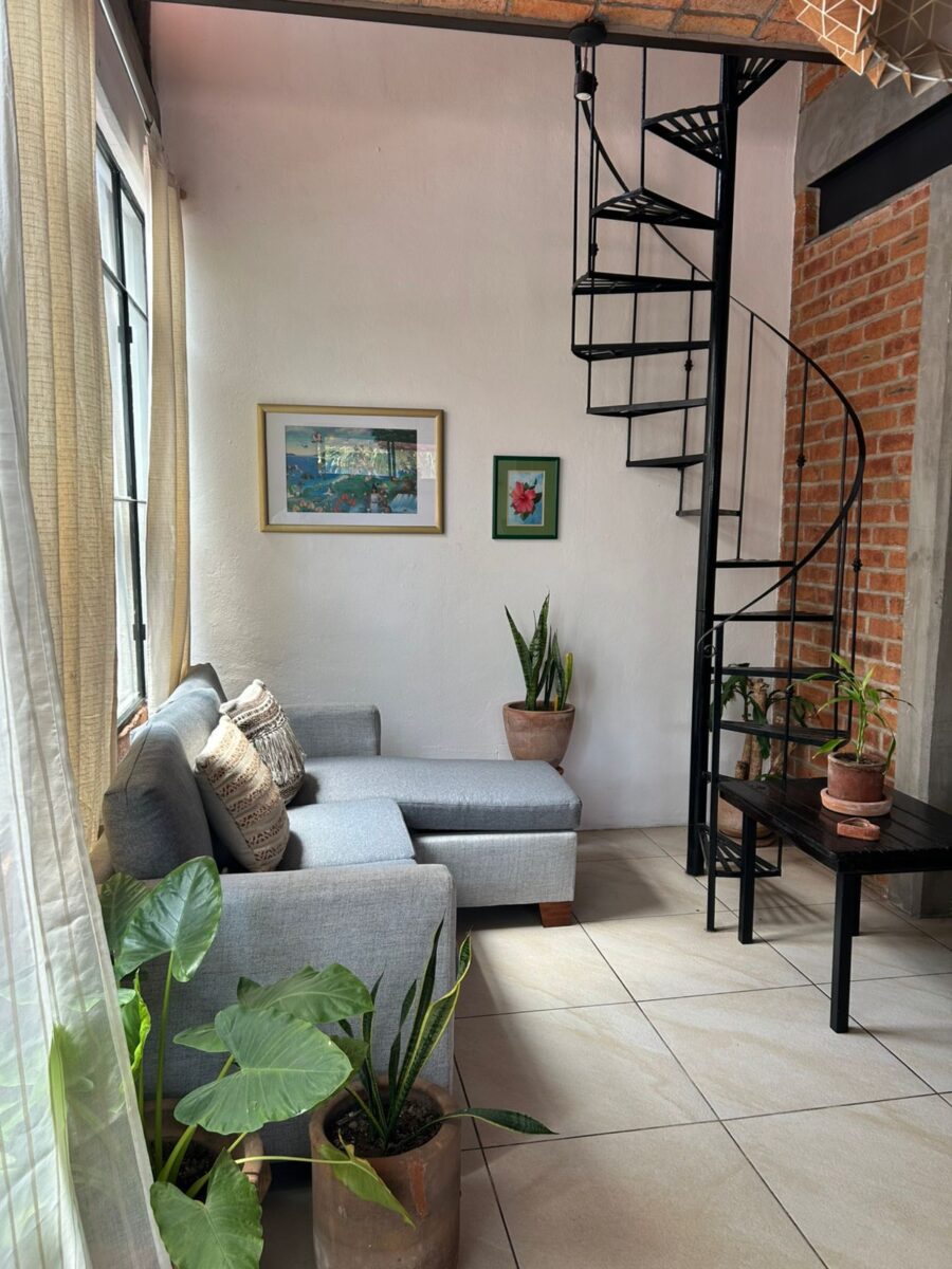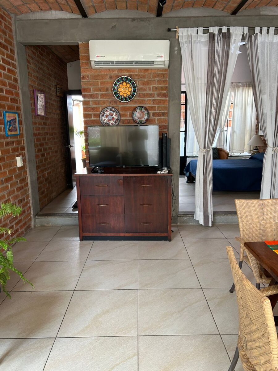 This one-bedroom, one-bath sits next to CMQ and Medasist hospitals. Above the dentist office. One flight of stairs to get into the apartment and one flight up to your private rooftop area. Double-pane window to cut any outside noise.
