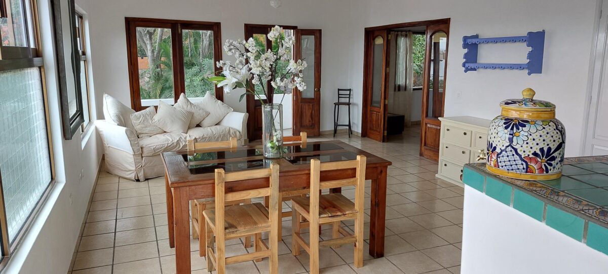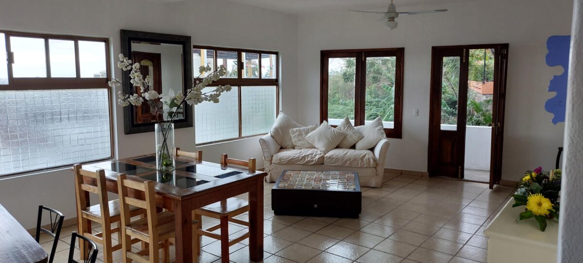 The location is on a short, dead-end street with easy access to the Libramiento. Under five minutes walk takes you to bus stops for routes in every direction, a 15-minute ride will bring you to the center of town or the Romantic Zone/Los Muertos area. The nearest beach is 8 blocks away. The famous seafood market is just one block away and many shops and restaurants can be found in the nearby streets.