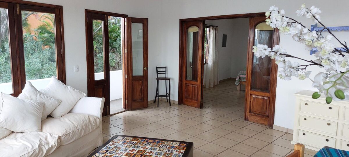 The upper floor has the master suite with a cupola, closet, bathroom, separate walk-in, open-air, double shower room, and a large wrap-around terrace with fabulous bay views across to Punta de Mita. The property boasts high ceilings and vast windows, lots of natural daylight and sea breezes, and spectacular views.