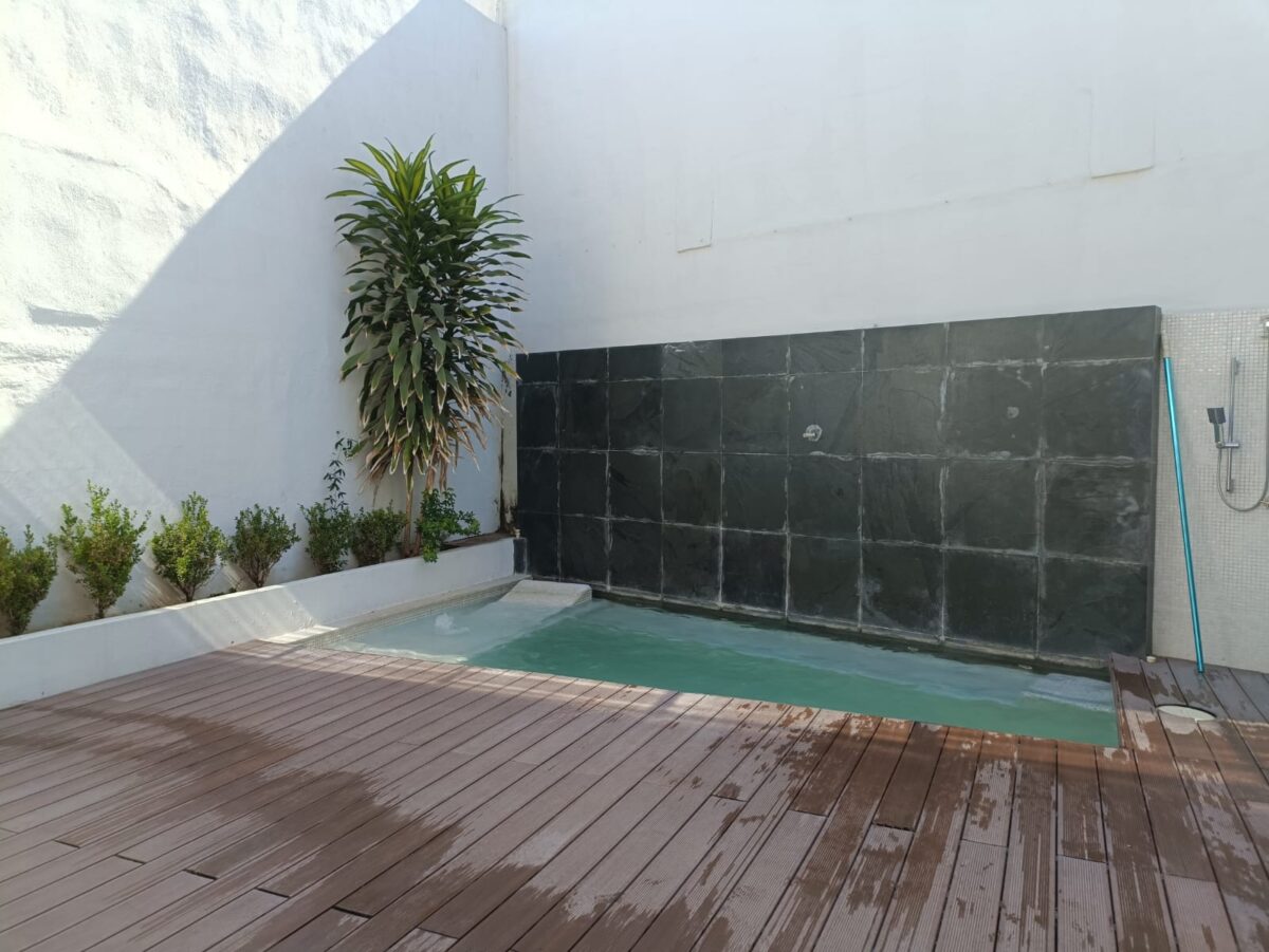 What an amazing single-family home. This 3 bedrooms and 4 bathrooms plus a den or 4th bedroom. The main floor has a living room, dining room, kitchen, den, or fourth bedroom with a full bathroom. Upstairs are three bedrooms and three bathrooms. Two of the bedrooms have a balcony looking out to the dipping pool.