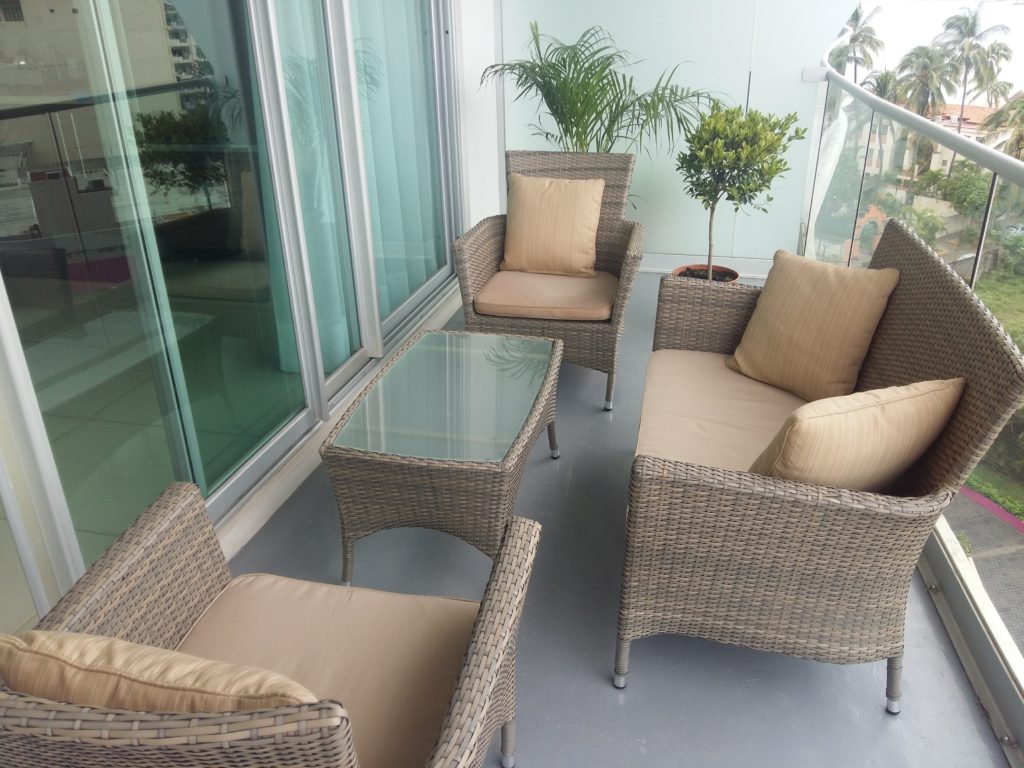 This balcony has a large wrap around that allows you to see the ocean from either side of the balcony. The main part of the balcony allows you to relax in shade in the heat of the day. Once you are on the balcony you may not want to come back inside. This balcony is as comfortable as any outdoor sitting area you have ever seen. It features a table with 4 chairs, loveseat with coffee table, and two chairs with ottomans. I am sure you will agree this is as good as it gets.