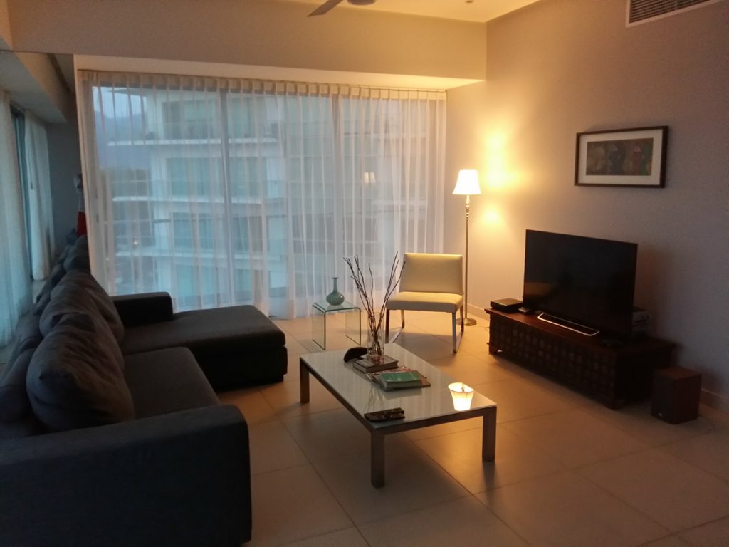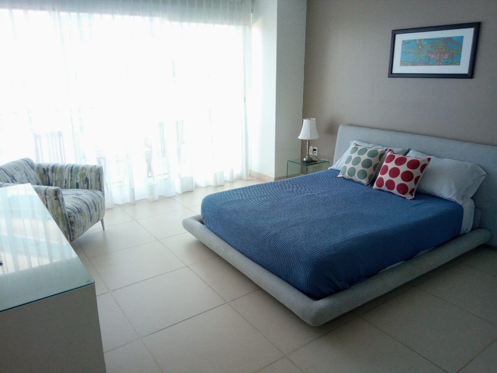 The Puerto Vallarta Vacation rentals master bedroom features a Queen-sized super plush pillow top bed with dual side tables & lamps. A 43″ Smart TV with Netflix. With this distinctively appointed bedroom, you can sense you are in a tropical paradise. The living room has a 50″ Smart TV with Netflix. Also, have 10mg WiFi speed.