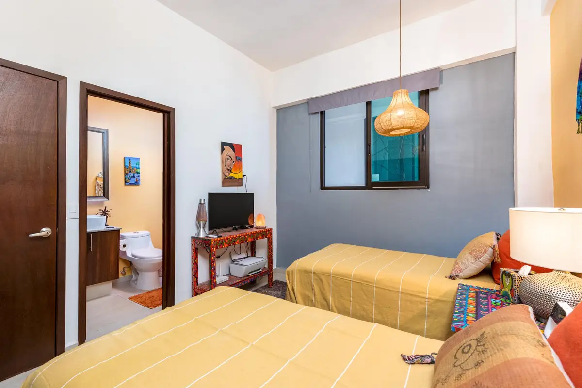 This wonderful 2-bedroom and 2-bath condo is available for vacation rental from Oct through April. Manyara is in the Hotel Zone in Maria Montessori. This condo is on the 4th floor of a 10-story condo with wonderful sunset views. With about 1003 sq ft of space to enjoy.