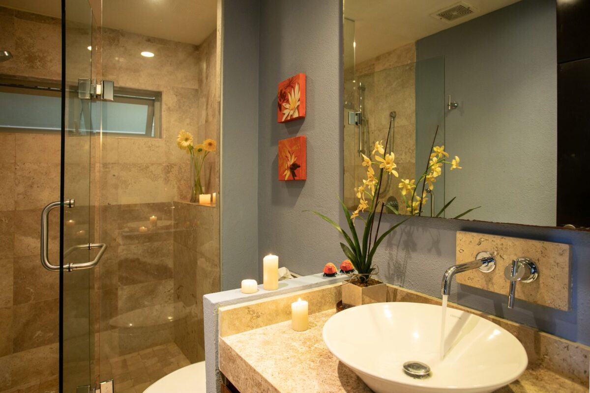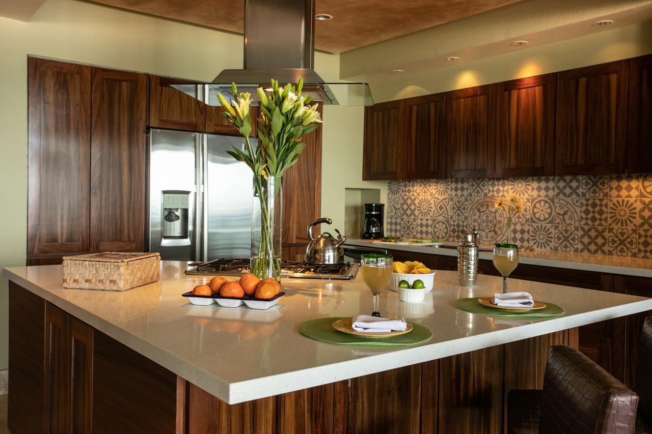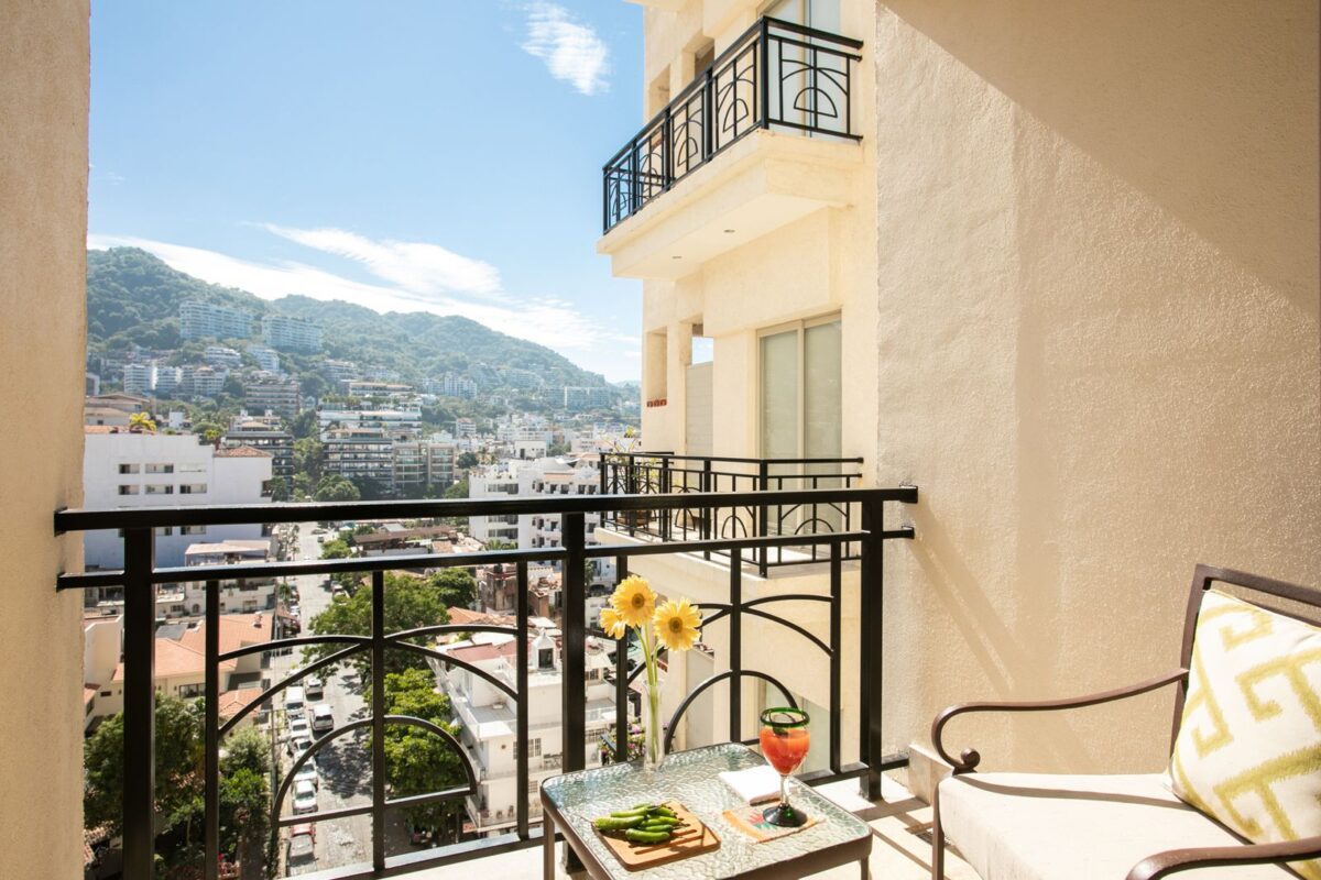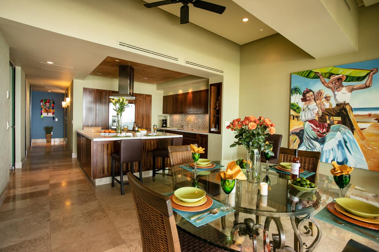 This Puerto Vallarta condo rental is 3000+ sq ft of luxury! It has 2 master bedrooms with king beds, spacious en-suites, and patios to greet the morning sun and mountain views. A third bedroom/den has a queen bed and a bathroom beside it. A small hotel safe is on site. (Nonsmoking, please.)