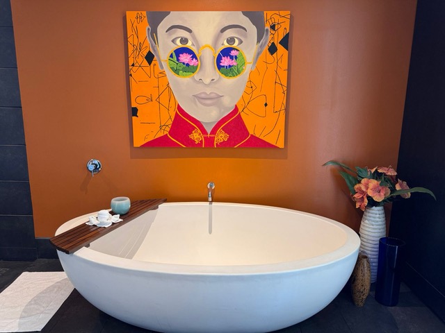 The second suite has a queen-sized bed and private bathroom, ceiling fan, air conditioning, and closet The third bedroom has a queen-sized bed, ceiling fan, air conditioning, and bathroom located in the hallway next to the bedroom.