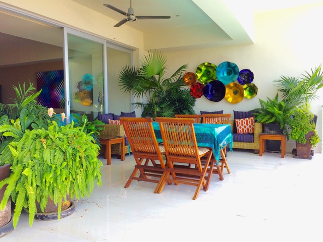 The views from this 8th floor are incredible, and the balcony includes beautiful outdoor furniture with comfortable and colorful cushions, the perfect place for a cup of coffee in the morning, or a margarita while relaxing with friends in the evening, watching the fantastic sunsets, evening fireworks and the spectacular city lights of Puerto Vallarta.