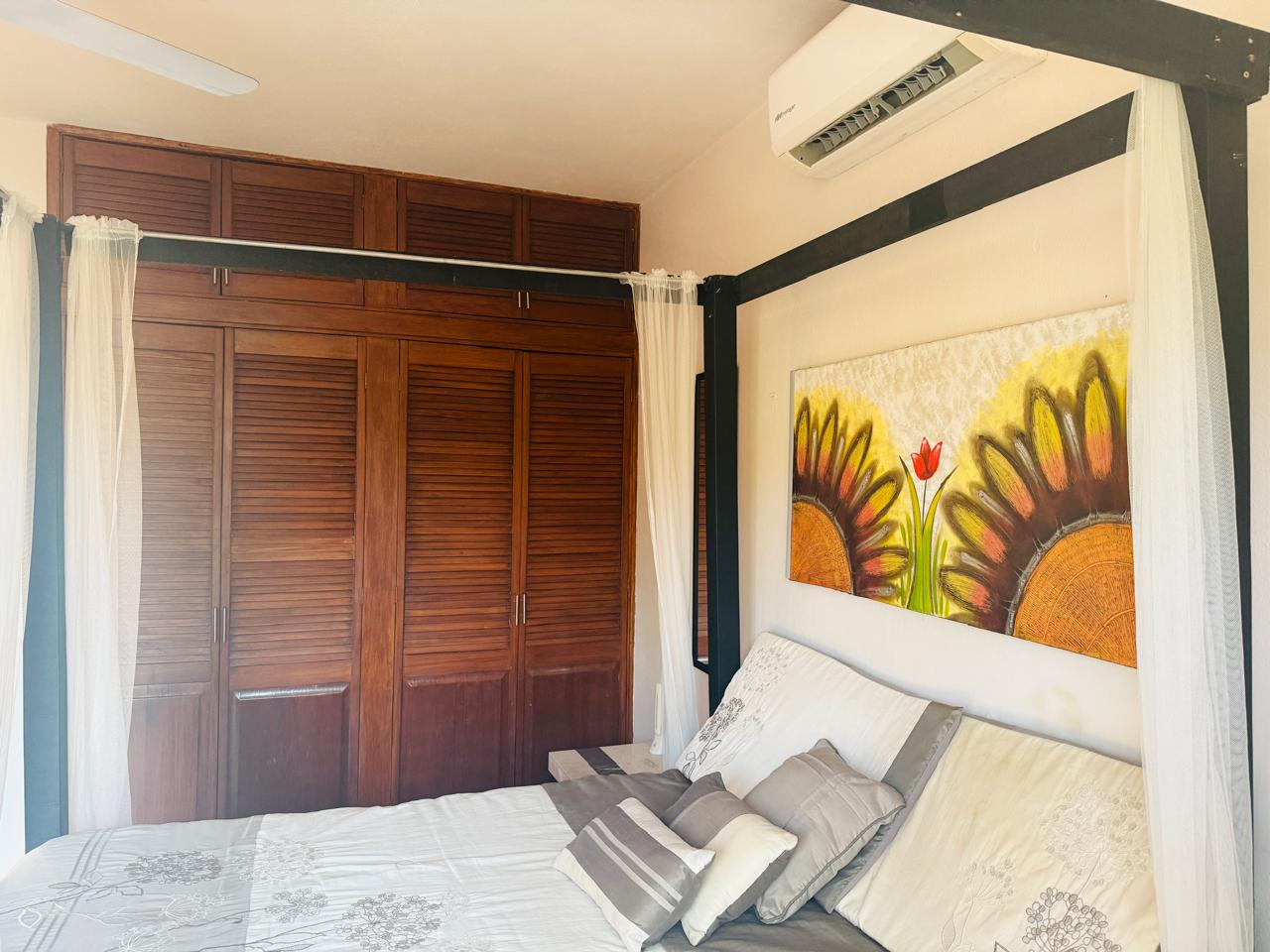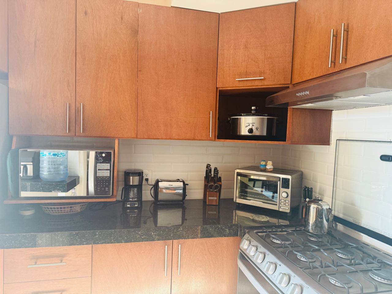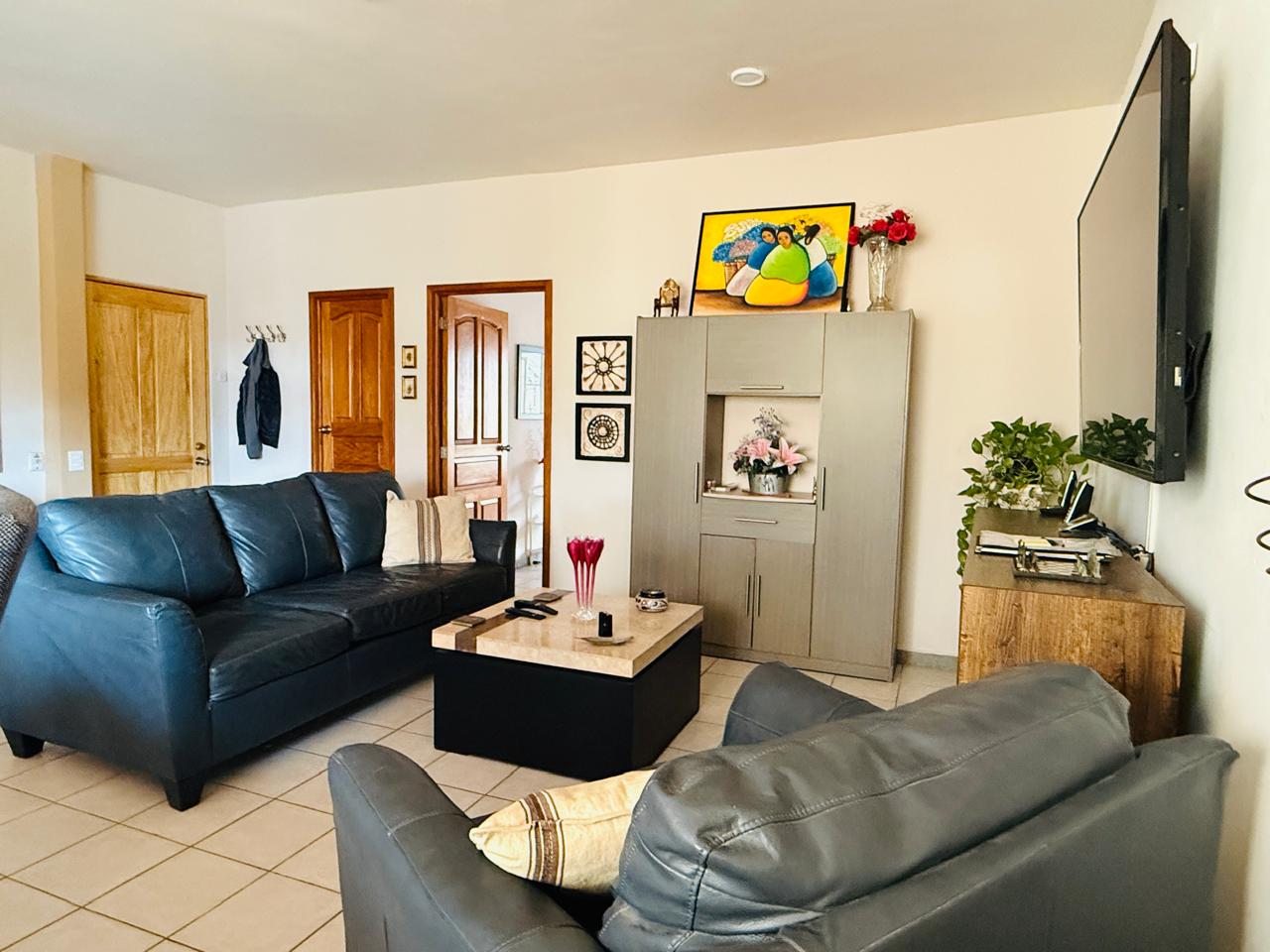 This newly furnished three-bedroom apartment has 2 full bathrooms and one half bathroom
