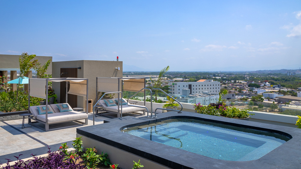 With unforgettable views, as well as inspiring common areas, such as the roof garden with jacuzzi and hammocks, the restaurant, or its saltwater pool.