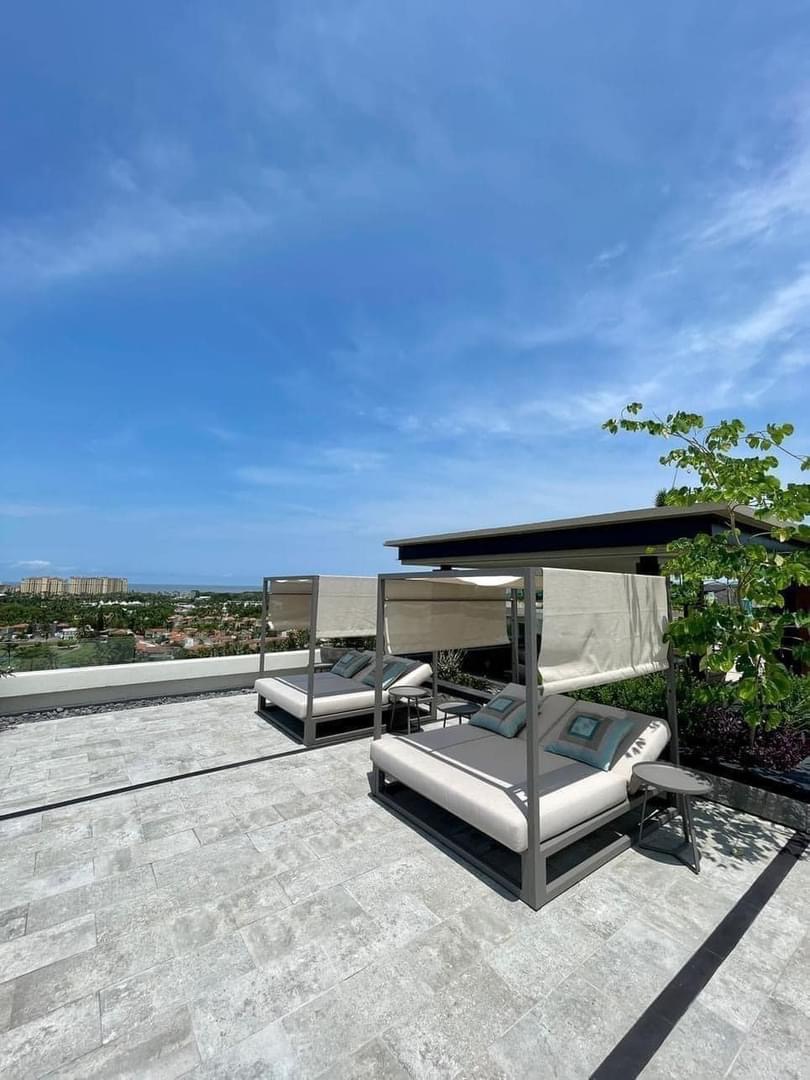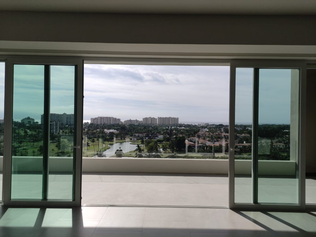 Unfurnished V Golf is a 10-story tower development, This 3-bedroom 3.5-bathroom unit faces the golf course With unforgettable views, as well as inspiring common areas, such as the roof garden with Jacuzzi and hammocks, the restaurant, or its saltwater pool.