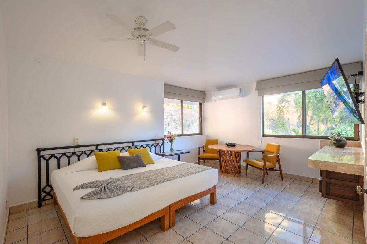 Private Casita: A separate two-bedroom casita with its own entrance, ideal for guests seeking additional privacy. One bedroom features a king-size bed and kitchenette; the other offers two double beds—both with en-suite bathrooms.