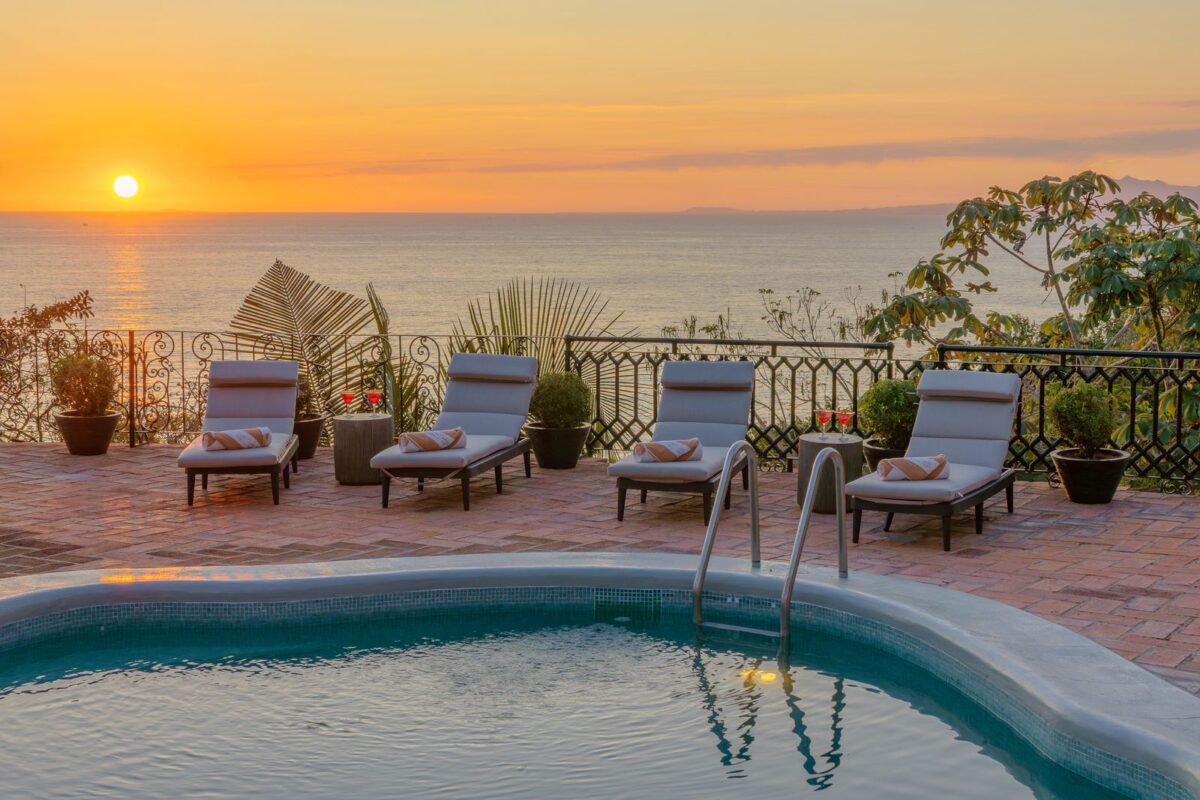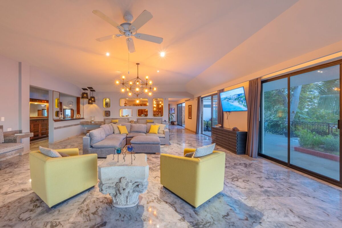 Perched high above the coastline in the prestigious enclave of Conchas Chinas, Villa Castillo is a timeless sanctuary offering more than 12,000 square feet of refined living space and breathtaking, panoramic views of the Bay of Puerto Vallarta, the city skyline, and iconic landmarks including Los Arcos and the Marietas Islands. Recently refreshed with a chic mid-century modern aesthetic, this exceptional villa blends classic elegance with contemporary comfort for an unforgettable escape in paradise.